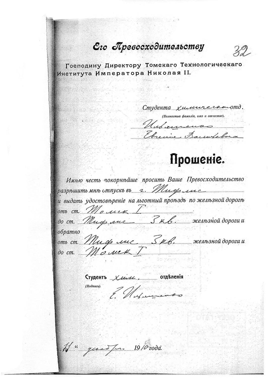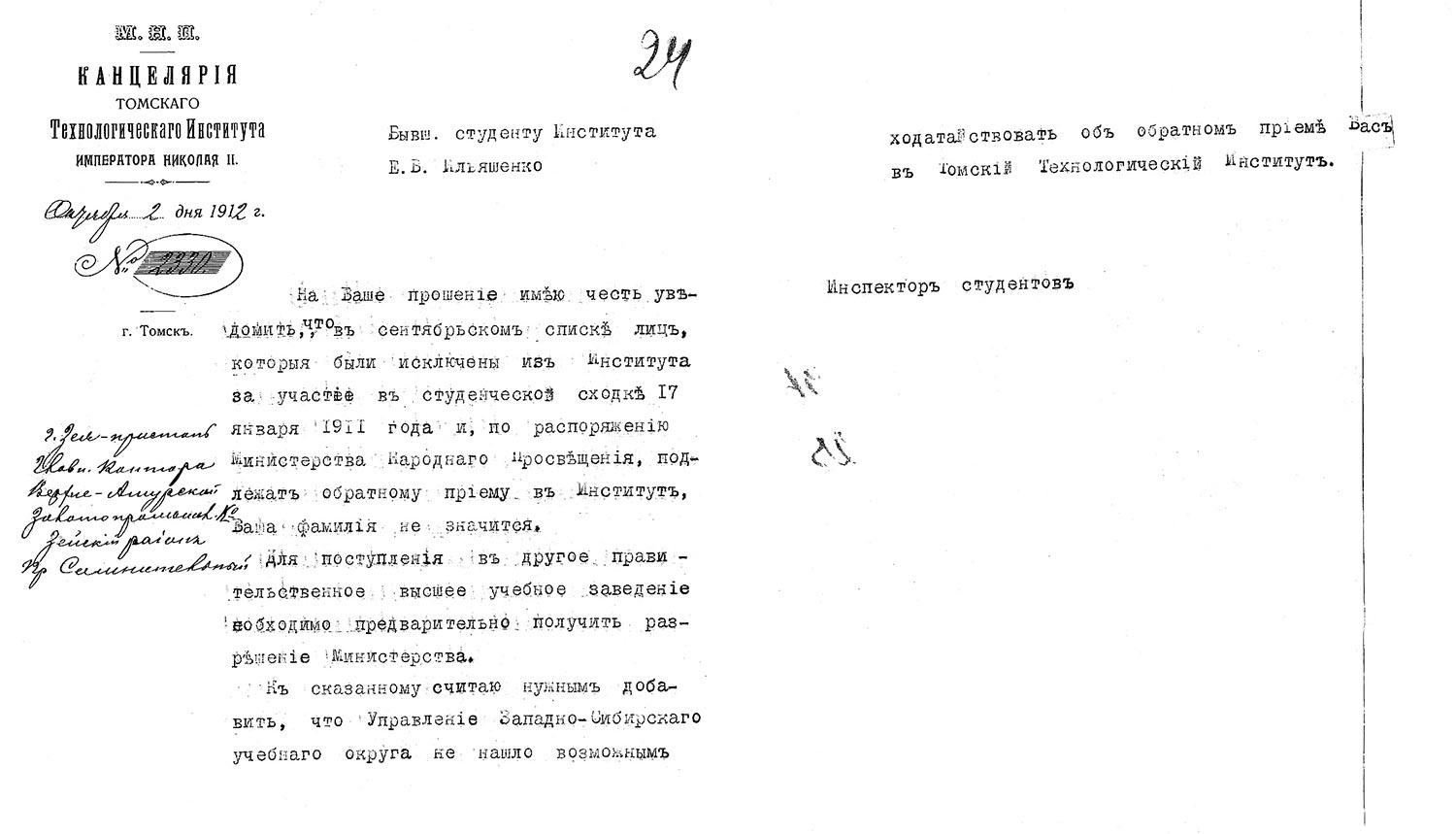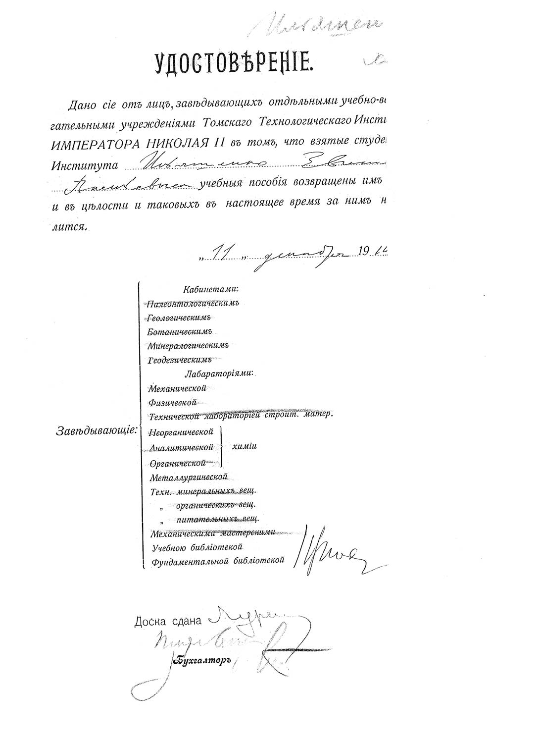 1911 г. о сдаче учебных пособий студентом Томского