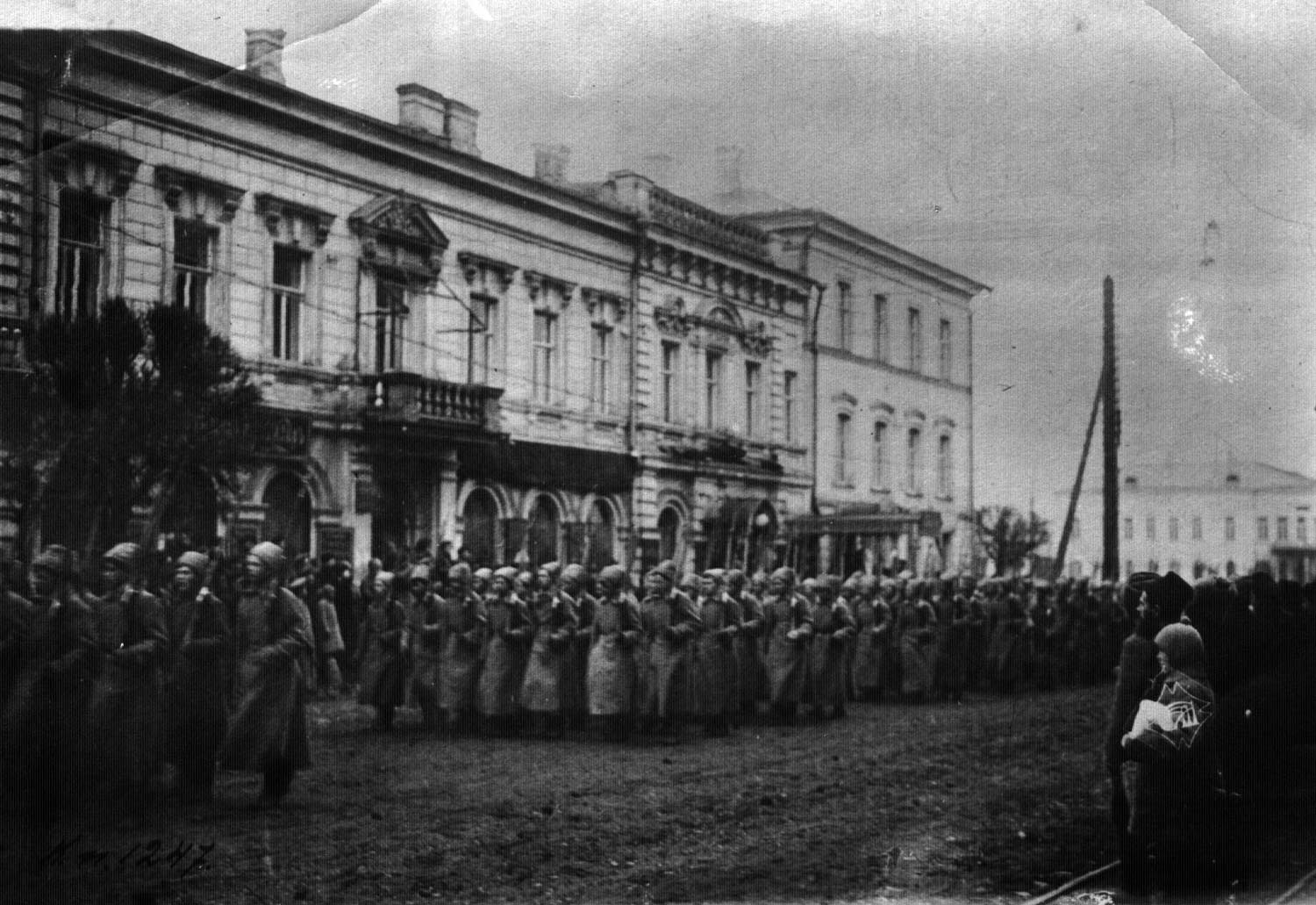 3.1. Демонстрация солдат в день «Праздника революции» в Томске. 10 марта 1917 г. Фотография из коллекции Государственного центрального музея современной истории России.
