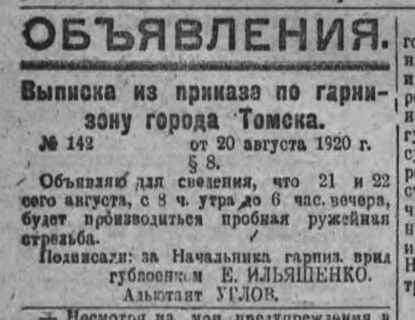 3.14. Фрагмент газеты «Знамя революции» от 21 августа 1920 г. Источник: http://sun.tsu.ru/mminfo/2012/349 014/index.html