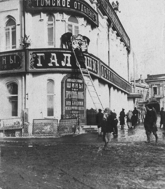 3.2. Снятие царской символики со зданий в Томске. 7 марта 1917. Источник: http://humus.livejournal.com/1 950 159.html