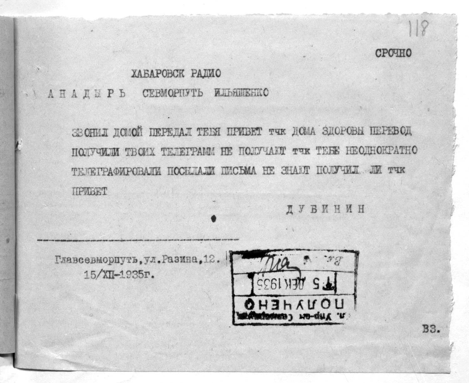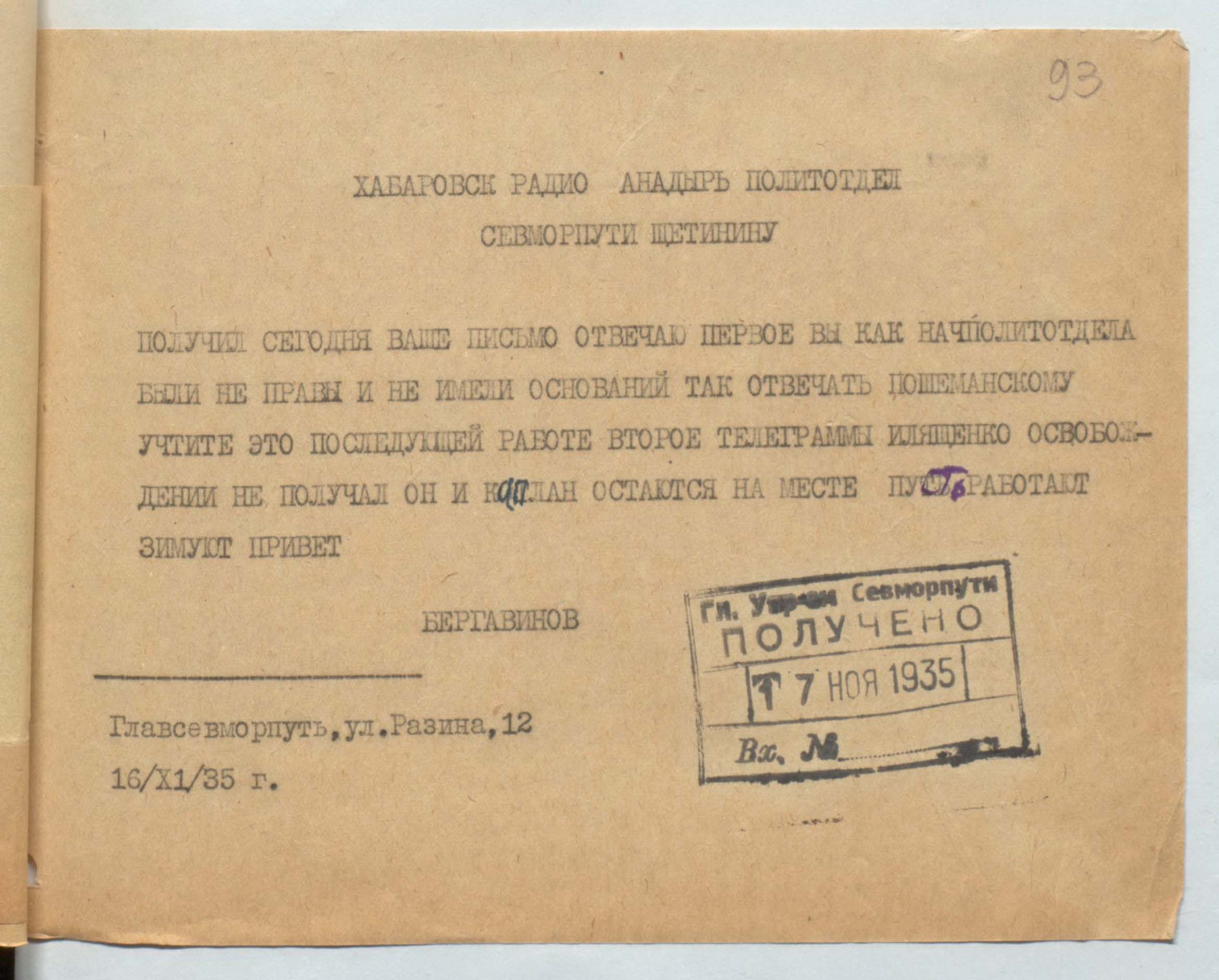 главсевморпути т. Бергавинова
