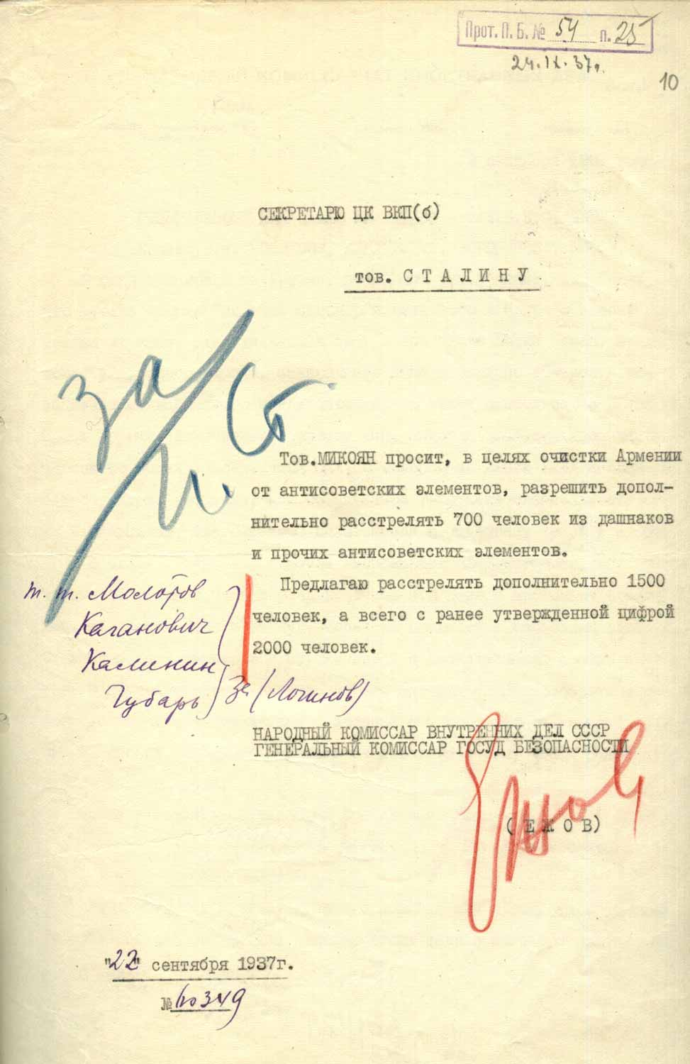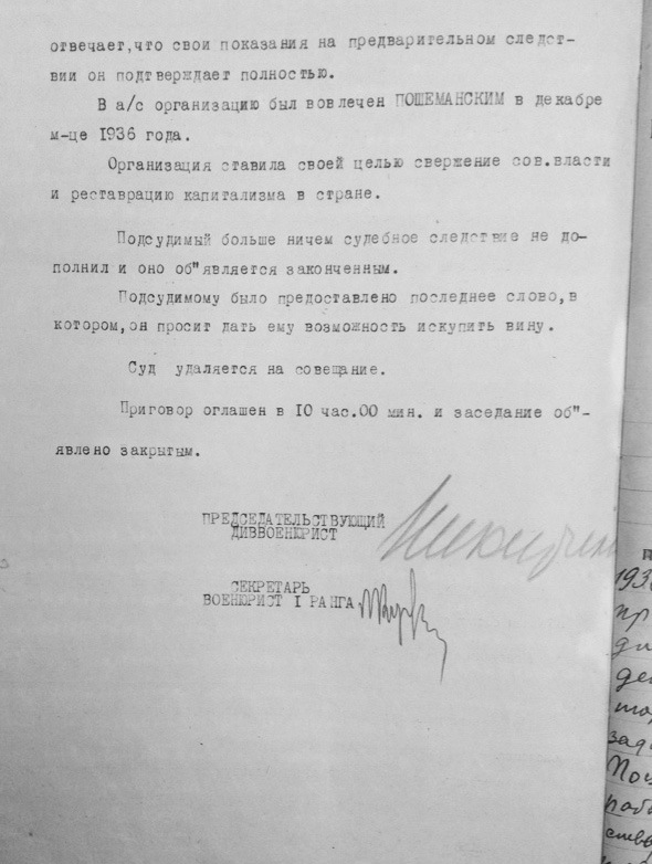 За замазывание перед партией врагов народа и своего отношения к ним, постановление первичной парторганизации Д/В Теруправления Севморфлота от 4/XI-37 года утвердить.